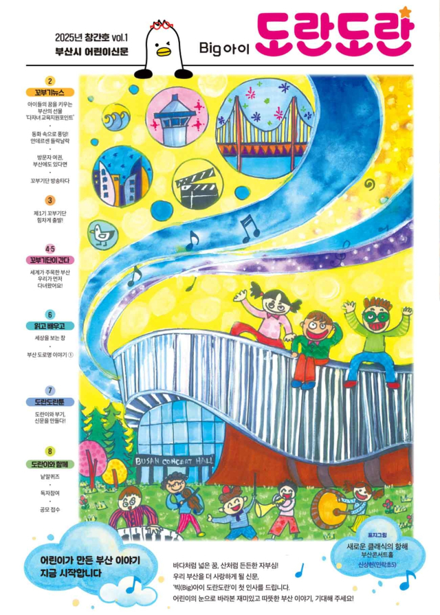 부산시는 올해 6월 창간호를 발행해 부산의 초등학교 및 어린이 시설에 배포하고 있다. 부산의 주요정책과 문화시설 등을 어린이 기자가 직접 취재한 계간지(季刊誌)다. ‘빅(Big)아이 도란도란’은 ‘부산이라 좋다(Busan is good)’의 영문약자인 빅(Big)과 어린이들이 세상을 바라보며 도란도란 이야기를 나눈다는 의미를 담고 있다.