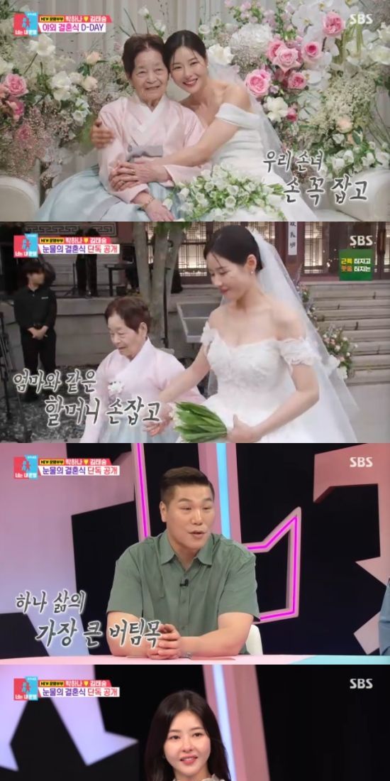 헐머니와 함께 손을 잡고 걸어들어오는 박하나의 모습을 본 서장훈은 애써 눈물을 참으면서 "너무 좋은 결정을 했다. 최고의 선택을 했다"고 했다. 이어 이지혜와 김숙도 "할머니께서도 엄청 행복하셨을거다. 마음으로 다 느끼셨을 것"이라면서 눈물을 글썽였다.