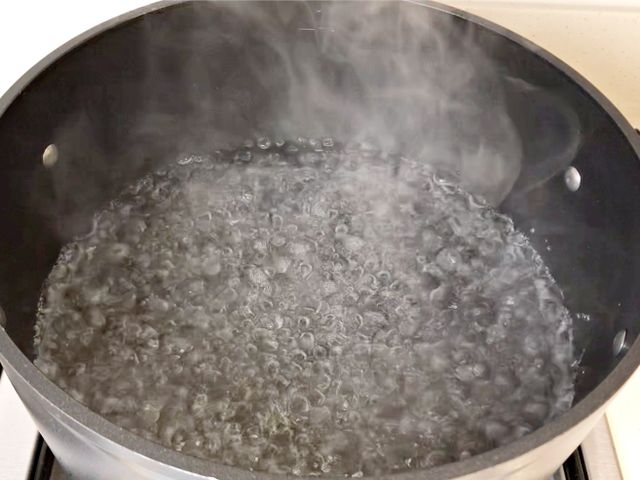 냄비에 물을 끓여요.