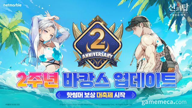 넷마블은 넷마블엔투가 개발한 수집형 RPG '신의 탑: 새로운 세계'의 출시 2주년 기념 업데이트를 실시했다. 신규 동료 [FUG의 간부] 하유라, [자하드의 공주] 가람이 등장하며, 여름맞이 바캉스 캠페인도 연다.