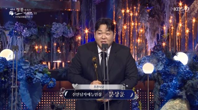 이날 신인남자예능인상 후보로는 ‘주관식당’의 문상훈, ‘흑백요리사: 요리 계급 전쟁’의 윤남노, ‘SNL 코리아’ 시즌 6·7의 이진혁, ‘김성근의 겨울방학’의 정근우, ‘데블스 플랜: 데스룸’의 정현규가 오른 가운데 수상의 주인공은 ‘주관식당’의 문상훈에게 돌아갔다.