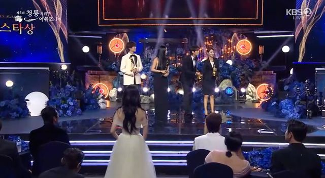 이준영은 이내 자신이 아님을 깨닫고 빠르게 무대 아래로 내려가 이준혁에게 트로피를 전달했다. MC 전현무는 "이준영 씨도 인기스타가 맞지만 올해는 이준혁 씨가 일등스타였다. 발음을 정확히 했어야 하는데. 저는 왜 갑자기 이준영 씨가 나오나 했다. 이준혁 씨였다"고 상황을 설명했다.