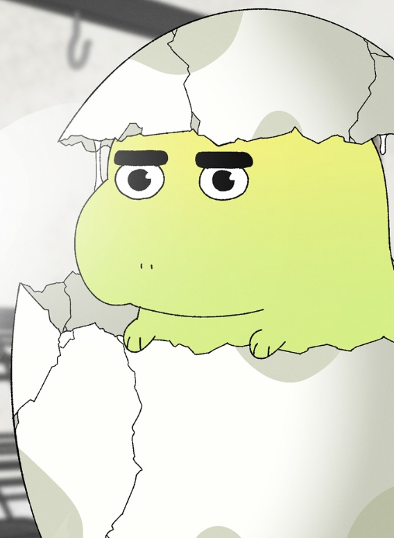 초록색인 점과 알을 깨고 나왔는다는 것에서 추론해