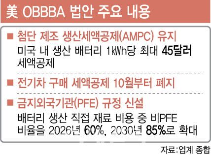 OBBBA 통과로 미국 현지에서 배터리를 생산하는 기업에 세액공제를 제공하는 첨단제조 생산세액공제(AMPC·45X) 혜택은 유지됐지만, 전기차를 구매하는 소비자들에게 최대 7500달러의 세액공제 혜택을 제공하는 조항(30D)이 조기 폐지되면서 수요 위축으로 어려움을 겪을 수 있다는 건 우려할 지점이다.