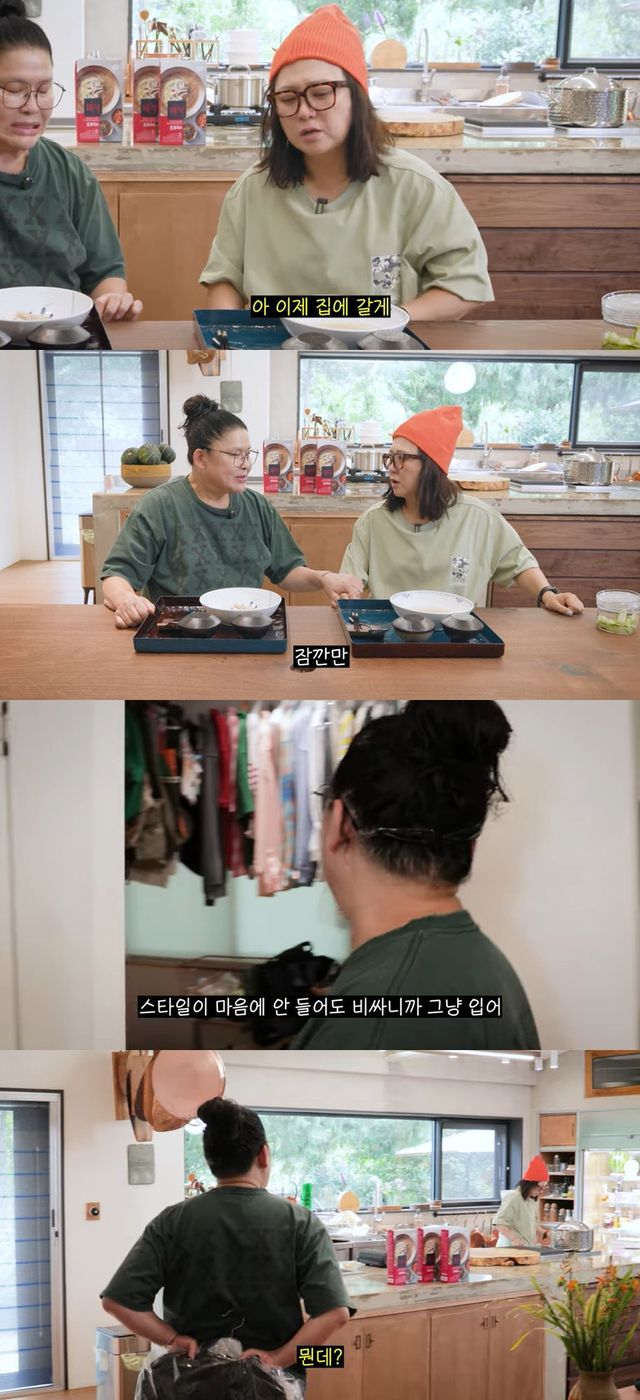 김숙도 "언니가 내 스타일 너무 잘 아니까"라며 만족스러워했고, 이어 "근데 이거 내 수입으로는 못 사는 건데"라고 하자 이영자는 "내 수입으로 샀다. 내가 그래서 박세리 씨랑 새로 하는 거 들어간 거 아니냐. 이거 사주려고"라며 너스레를 떨었다.