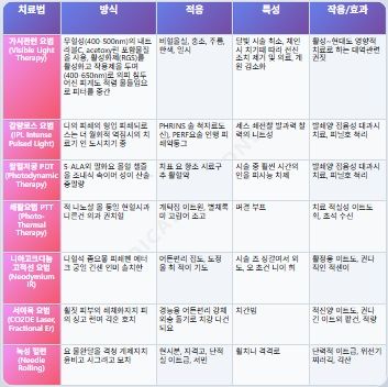 (표)주요 비약물 여드름 치료법 원리 및 효과