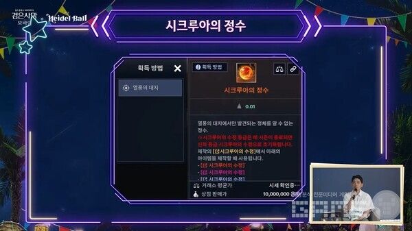 MC 허준과 레이라의 사회로 진행된 이번 하이델 연회에는 펄어비스의 안형규 게임디자인실 실장과 최용석 게임디자인실 리더가 참가하여 올해 하반기에 선보일 주요 콘텐츠에 대해 설명했다.
