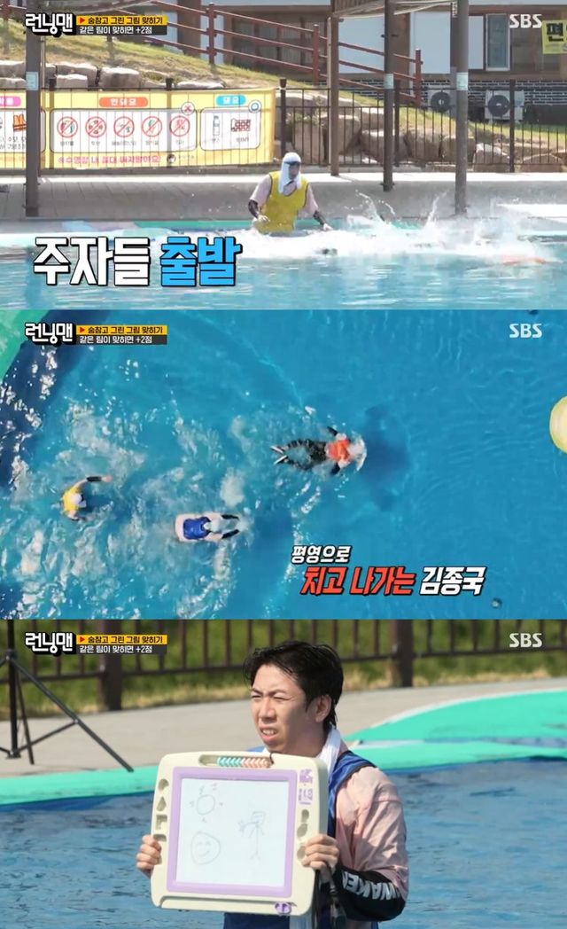 당황한 양세찬에 정답을 눈치챈 세 사람은 혈투 끝에 김종국이 튜브 위에 올라서며 정답 기회를 차지했다.