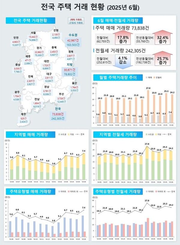 전월세 거래량은 24만2305건(임대차신고제 19만4226건+확정일자 4만8079건)으로 전월 대비 4.1% 감소