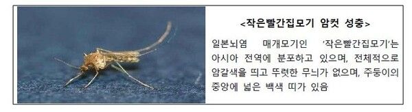 뉴시스 보도에 따르면, 이는 일본뇌염 매개모기 감시체계 운영 결과 지난달 30일(31주차) 전남 완도군에서 일본뇌염 매개모기인 작은빨간집모기가 전체모기의 60.1%(1053마리 중 633마리)로 확인된 데 따른 것이다.
