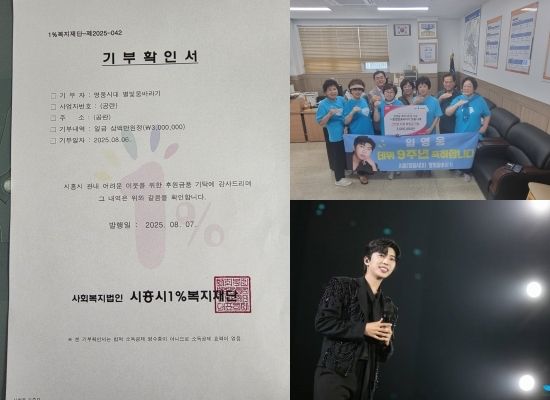 전달식에 참석한 '영웅시대 시흥별빛웅바라기' 측은 "꾸준히 따뜻한 나눔에 동참하며 지역과 함께 나아가는 팬클럽이 되겠다”라고 소감을 전했다.