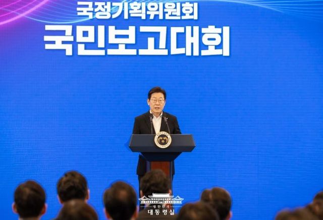 이 대통령은 이날 청와대 영빈관에서 열린 국정기획위원회 국민보고대회에 참석해 "오늘 국정기획위가 만든 대한민국 향후 5년의 설계도를 보여드리게 된다"며 이같이 말했다.