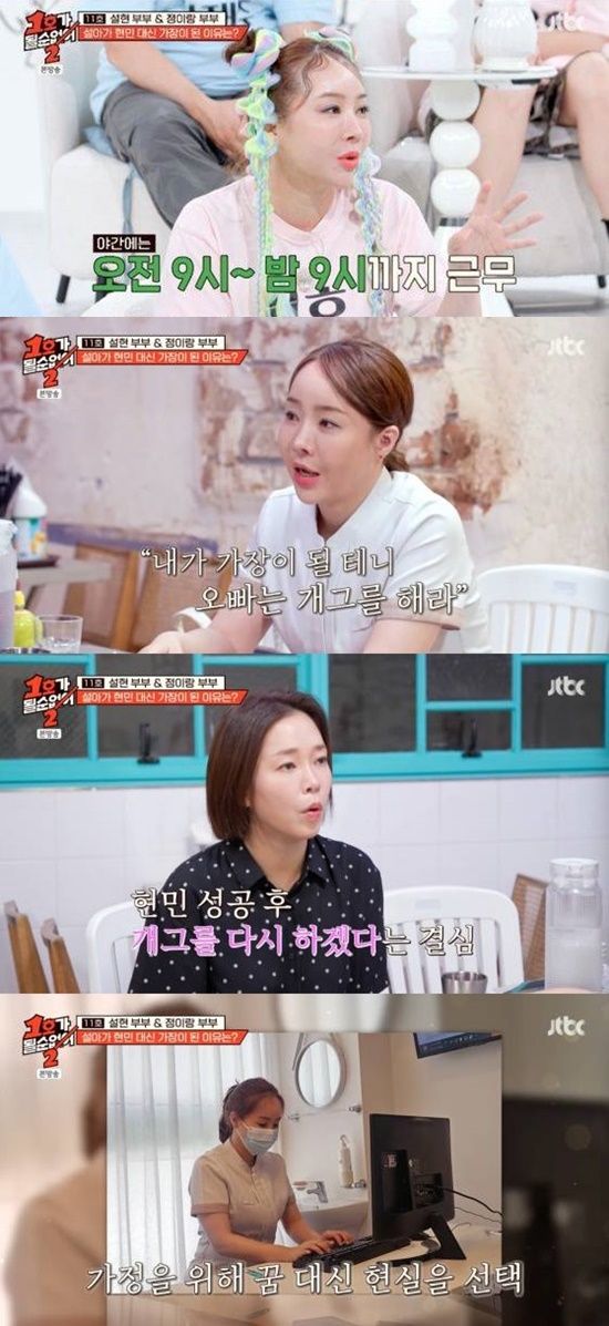최설아는 "처음에는 내가 선택한 남자니까, 내가 후회하면 안 된다고 생각했다. 그런데 어느 순간 현타가 오더라. 임신했을 때 막달부터 4개월 쉬어본 것이 다다. 그런데 통장에 돈이 없다"며 울컥했다.