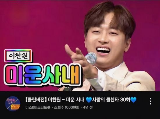 지난 2020년 10월 '미스&미스터트롯' 공식 유튜브에는 "[클린버전] 이찬원 - 미운사내. 사랑의 콜센타 30화"라는 제목의 영상이 게재됐다.
