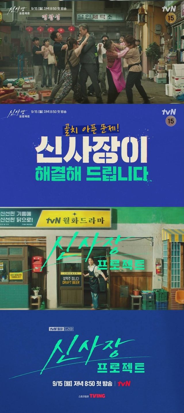 전 레전드 협상가, 현 치킨집 사장으로 미스터리한 비밀을 가진 신사장이 편법과 준법을 넘나들며 사건을 해결하고 정의를 구현해 내는 분쟁 해결 히어로 드라마 tvN 새 월화드라마 ‘신사장 프로젝트’는 오는 9월 15일(월) 저녁 8시 50분에 첫 방송된다.