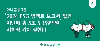 하나금융그룹은 ‘024 ESG 임팩트 보고서’ 통해 2024년 한해 동안 추진해온 ESG 경영 활동의 결과로 총 5조5359억원의 사회적 가치를 창출했다고 18일 밝혔다.