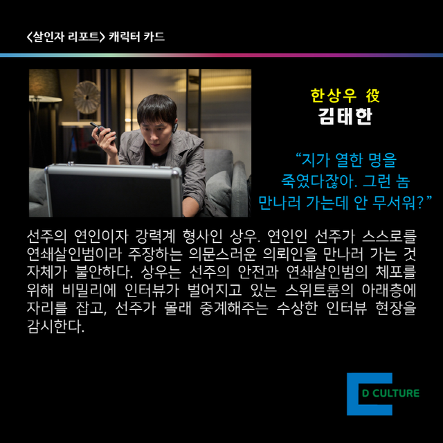 내달 5일 개봉하는 영화 <살인자 리포트>를 재미있게 볼 수 있도록, 주요 캐릭터에 대한 카드 뉴스를 제작했다. <편집자 주>