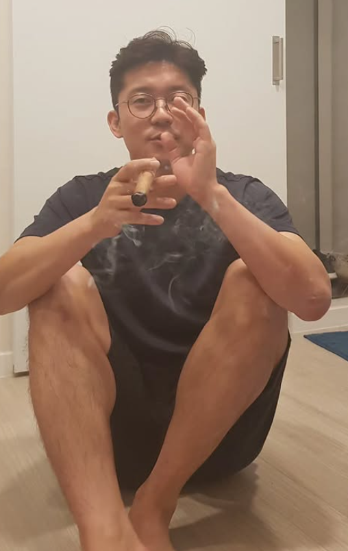 방송인 김대호가 실내에서 시가를 흡연하는 모습을 공개했다.