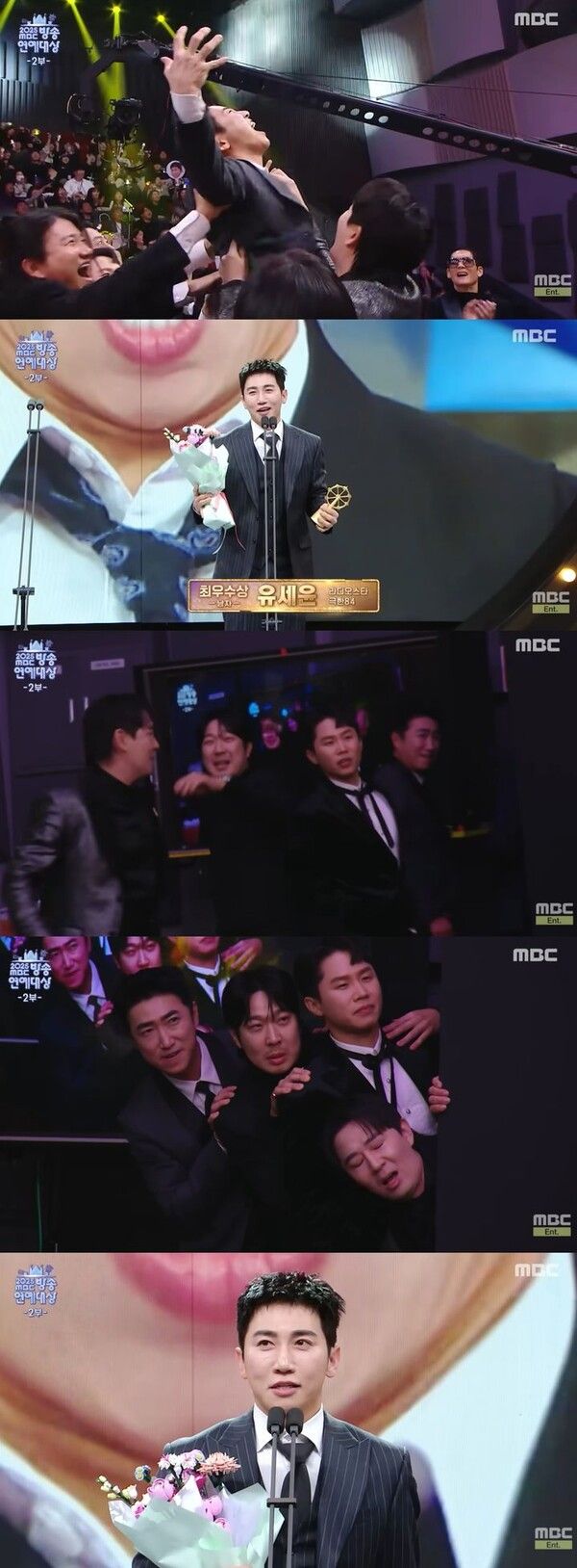 코미디언 유세윤이 MBC 연예대상에서 최우수상을 수상했다.