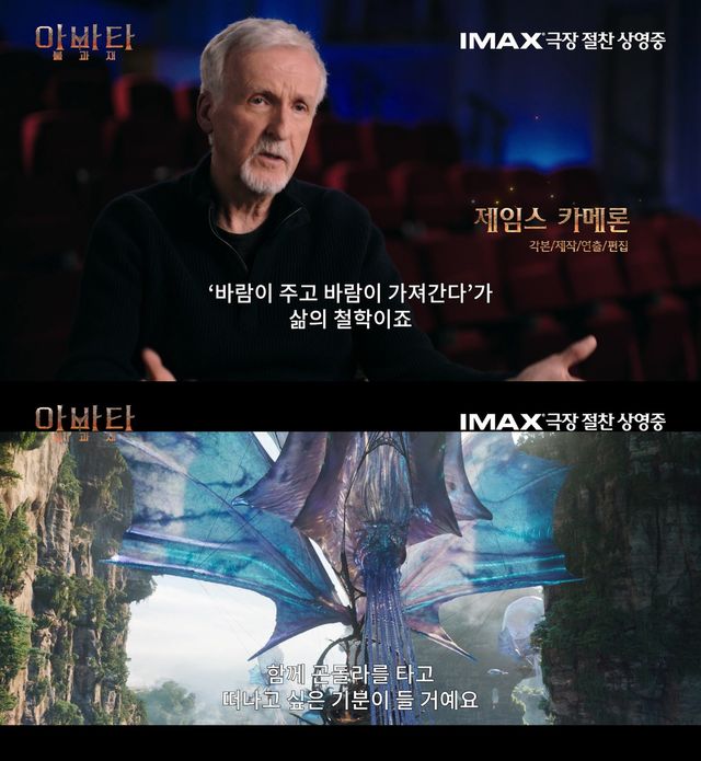 먼저 공개된 명장면 영상에는 '아바타: 불과 재'에서 가장 시선을 사로잡는 장면으로 손꼽히는 ‘멧케이나 부족’의 마을로 ‘바람 상인’이 도착하는 장면이 담겨 이목을 집중시킨다. ‘설리’ 가족의 아이들이 ‘이크란’을 타고 ‘바람 상인’의 거대한 비행 생명체 ‘메두소이드’를 처음 마주하는 순간은 압도적인 존재감과 경이로운 영상미로 감탄을 자아낸다.