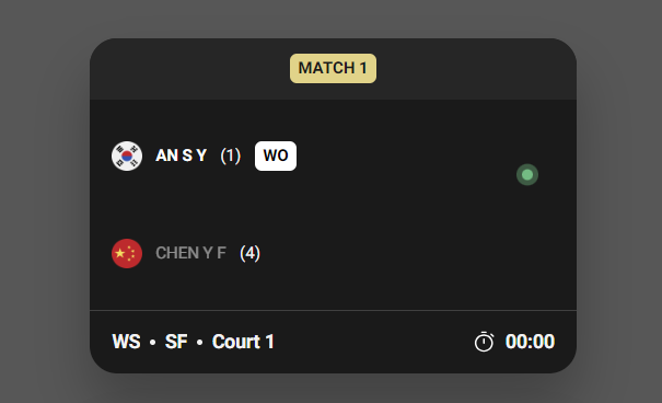 랭킹은 왕즈이가 훨씬 높지만 2016 리우 올림픽 은메달, 2020 도쿄 올림픽 동메달 등 올림픽 두 차례 입상한 신두의 경험도 무시할 수 없다. 신두는 부상을 치료하고 나선 이번 대회에서 일본의 미야자키 도모카를 2-0으로 완파하더니 8강에서 같은 일본의 야마구치 아카네에 기권승을 거뒀다.