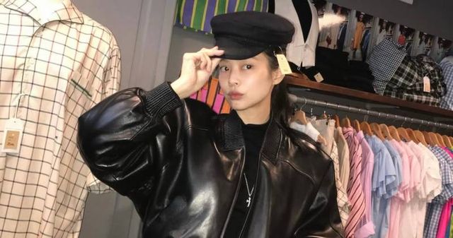큼지막한 오버핏의 체크 셔츠를 힙합 느낌으로 힙하게 스타일링한 제니. 톤다운된 블루 컬러의 셔츠에 그녀가 자주 착용하는 샤넬 비니를 매치하고 오벌 형태의 선글라스를 착용해 편하면서 예쁜 패션을 완성했어요.