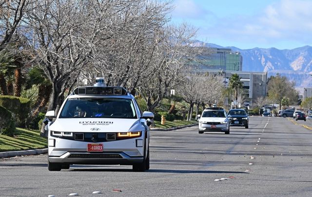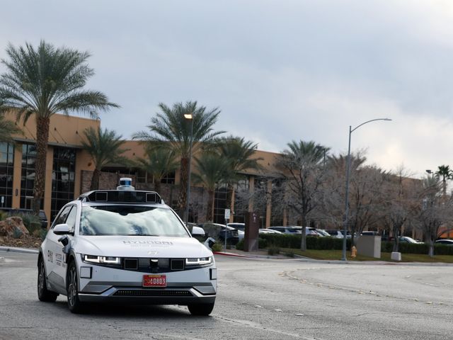8일(현지시간) 미국 네바다주 라스베이거스 모셔널테크니컬센터 앞에서 현대차 그룹과 모셔널이 함께 개발한 아이오닉5 기반 ‘로보택시’가 시범주행을 하고 있다. 라스베이거스=뉴스1