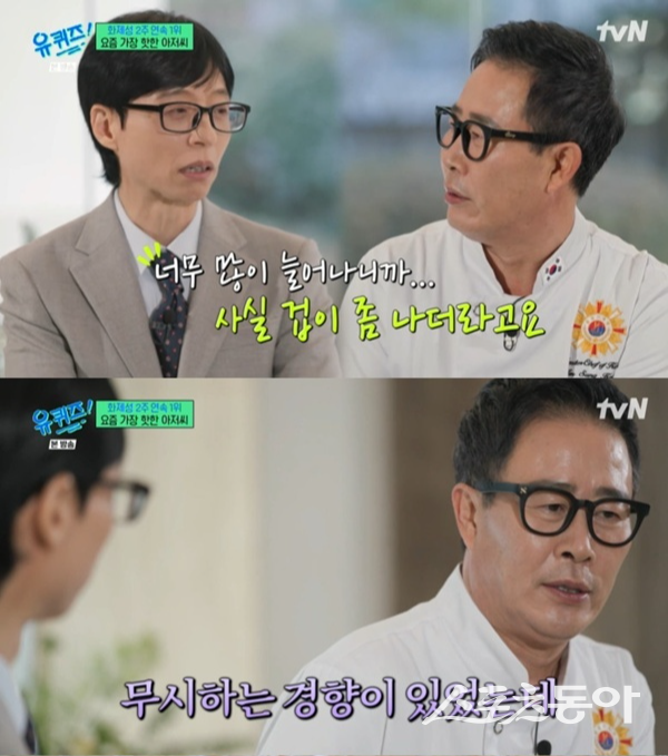 14일 방송된 tvN ‘유 퀴즈 온 더 블럭’(‘유퀴즈’)에는 임성근 셰프가 출연했다. ‘흑백요리사’ 시즌2 출연자인 임성근은 “출연자 화제성 지수 1위”라는 말에 “제가 존경하는 유재석 씨를 제쳤다. 현빈도 제치고”라며 너스레를 떨었다.