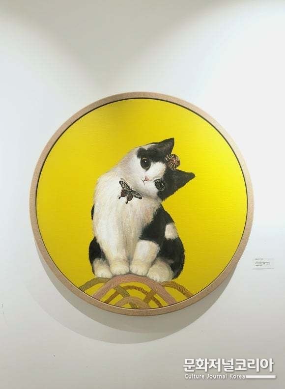 종종 작가는 때로 다가오지 않는 무표정한 고양이의 귀엽고 익살스러운 무심한 고양이의 표정을 화폭에 담아낸다. 매혹적이고 여유로운 그 어떤 표정보다 고민이 없는 고양이에게서 그녀는 자신을 고양이처럼 동일시하거나 감정 이입을 시도하는 패턴이 증거이다.