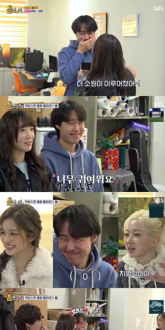 20일 방송된 SBS 예능 프로그램 '틈만 나면, 시즌4'에서는 '틈 친구'로 걸그룹 엔믹스의 해원, 설윤이 출연했다. 해원과 설윤은 유재석, 유연석과 함께 대전을 방문해 '틈 주인'에게 행운을 선물했다.