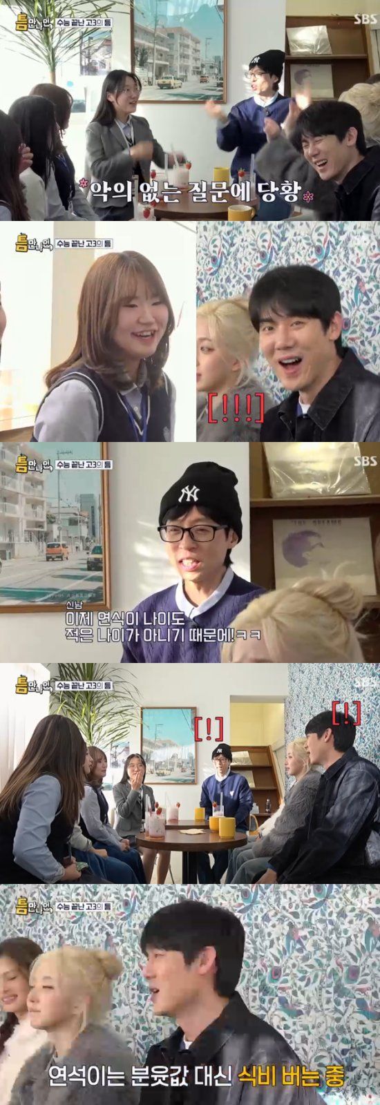 이후 이들은 여고생 틈 주인을 만나러 카페로 향했다. 수능을 막 끝낸 여고생 틈 주인은 절친 3명과 함께 현장을 찾았다. 이들은 여고생들답게 통통튀는 매력으로 미소를 유발했다.