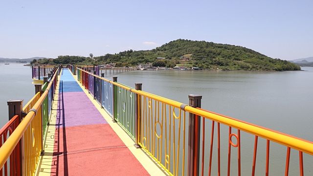 다리의 난간과 바닥면을 무지개 색상으로 도색하여 시각적인 즐거움을 주며, 보행자 전용 교량으로서 바다 위를 안전하게 산책할 수 있는 환경을 갖춘 것이 특징이다. 다리 초입과 중간에는 아기자기하게 꾸며진 포토존이 마련되어 방문객들이 다양한 색감을 배경으로 감성적인 사진을 남길 수 있다. 특히 해 질 녘 일몰 시간대에 맞춰 방문하면 붉게 물든 노을과 무지개색 다리가 어우러지는 경관을 감상할 수 있어 사진작가들과 관광객들에게 인기가 높다. 다리 중간에는 이용객들의 편의를 위한 쉼터와 주변 경치를 조망할 수 있는 전망 포인트가 적절히 배치되어 여유로운 탐방을 돕는다.