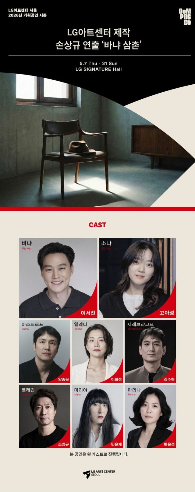 LG아트센터가 ‘벚꽃동산’, ‘헤다 가블러’를 잇는 제작 연극 시리즈의 새로운 작품, ‘바냐 삼촌’의 캐스트를 공개했다.