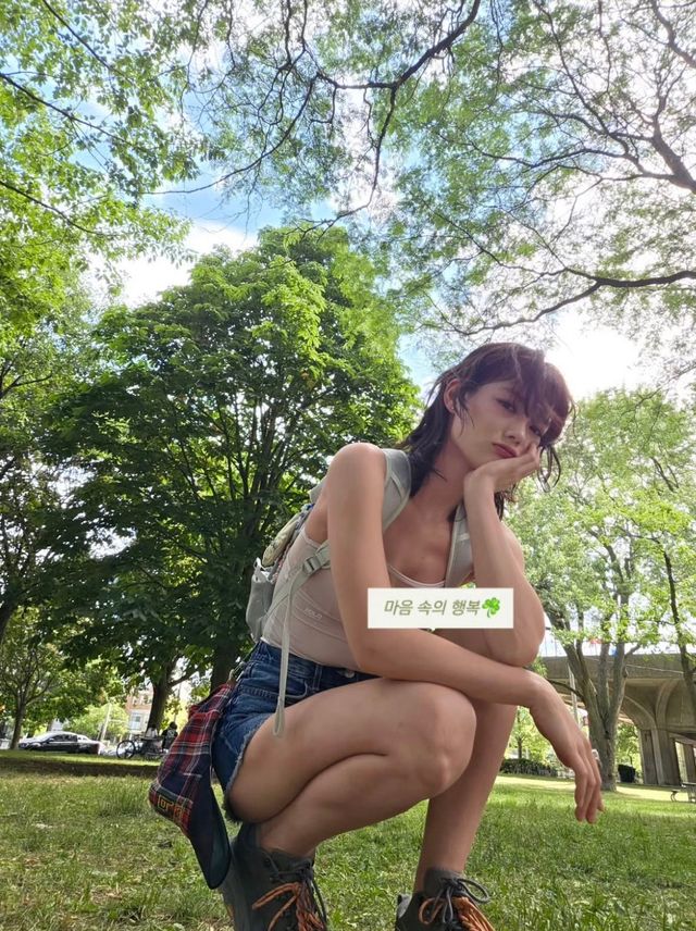 윈터의 여행 패션이 러블리하게 보이는 건, 과한 레이어링 대신 가벼운 실루엣을 선택했기 때문이다. 얇은 상의나 레이스 디테일로 포인트를 주고, 보디수트를 데님과 매치해 힘을 실었다. 상체는 가볍게, 하체는 여유 있게 가져가면 노출이 있어도 부담스럽지 않고 전체가 깔끔하게 정돈된다.