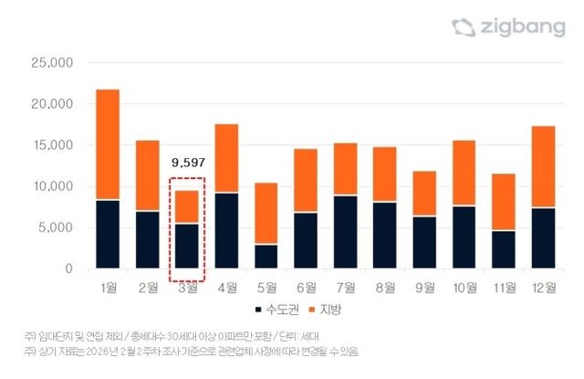 한편 3월 입주 물량은 올해 월간 기준으로 보면 가장 적은 수준이지만, 이는 일정 조정에 따른 단기적 감소 구간으로 해석된다. '단월 물량 감소'만으로는 시장 전반 수급 구조가 변화했다고 보긴 어렵다는 게 업계 평가다.