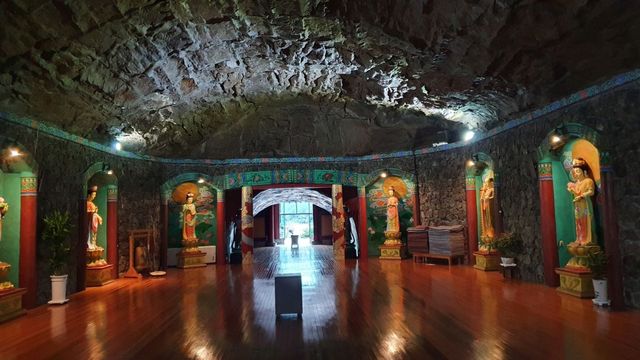 일붕사의 가장 큰 특징은 영국 기네스북에 등재된 ‘세계 최대 규모의 동굴 법당’이다. 대웅전은 동굴 법당 특유의 압도적인 규모를 자랑하며, 제2 동굴 법당인 무량수전 역시 장엄한 위용으로 방문객을 맞이한다. 어두운 동굴 안으로 들어서면 암벽에서 전해지는 서늘한 기운이 감각을 깨운다. 천장의 바위 무늬가 은은한 불빛을 받아 만들어내는 기묘한 분위기 속에서, 일반적인 사찰 건축과는 다른 동굴 특유의 정적이 수행의 깊이를 더해준다.