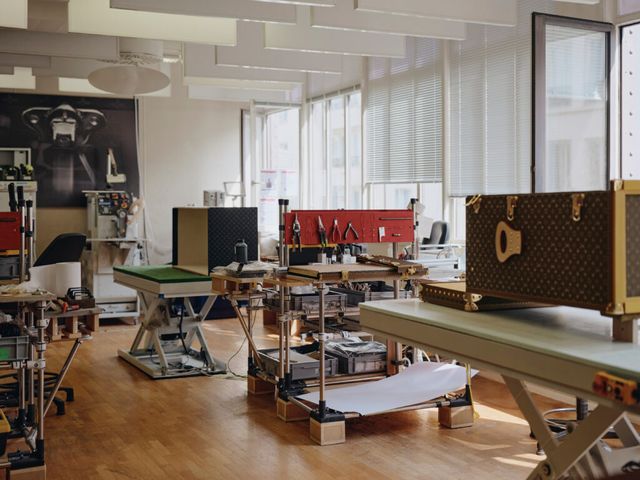 메종의 역사와 같은 나이테를 지닌 트렁크는 포플러, 너도밤나무, 오코메 나무 등 기본 구조가 될 나무를 자르고 다듬는 작업에서부터 출발한다. 이후 목재를 보강하기 위해 면 캔버스를 입히는 리빙(ribbing) 과정, 견고성을 높이기 위해 외곽선을 따라 가죽이나 섬유로 된 단단한 테두리를 못으로 고정하는 로지나주(lozinage) 과정을 거쳐 잠금장치, 모서리, 버클, 브래킷같은 금속 부품을 설치하고 손잡이나 바닥 슬랫, 보강용 슬랫을 부착하는 외부 마감 단계까지 마무리하면 우리가 익히 보아온 루이 비통 트렁크의 외관이 완성된다. 내부는 진귀한 텍스타일이나 가죽을 덧대 마감하고, 물건을 보호하기 위해 트렁크 뚜껑 안쪽에는 리본 스트랩을 교차해 엮은 말타주(malletage)가 더해진다. 각각의 자물쇠와 열쇠는 별도로 가공하는데, 하우스의 데이터베이스에 개인정보를 등록하면 고객이 소유한 모든 트렁크를 하나의 열쇠로 관리할 수 있다는 설명에서 여행자의 편의성을 그 무엇보다 우선시한 루이 비통의 철학을 엿볼 수 있었다.