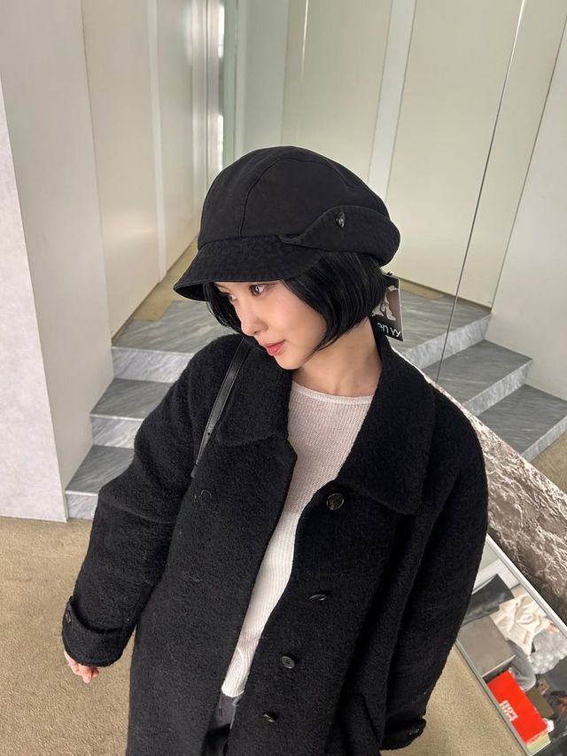 스타일링의 핵심은 그녀의 헤어 스타일 변화입니다. 층을 거의 내지 않고 턱선에 맞춰 가지런히 자른 블랙 보브컷(단발)은 김다연의 하얀 피부를 더욱 부각하며, 도시적이고 시크한 아우라를 완성합니다. 별다른 액세서리 없이 심플한 실버 링 이어링만을 착용해 의상과 헤어의 무드를 깨지 않는 절제된 미학을 보여주었습니다.