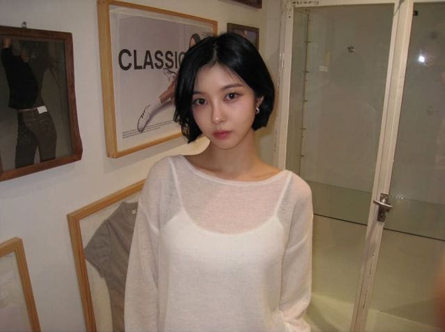 케플러(Kep1er)의 김다연이 심플한 화이트 니트와 블랙 보브컷 헤어를 매치하여, 맑고 깨끗한 이미지에 시크한 감성을 한 방울 더한 세련된 비주얼을 선보였습니다. 빈티지한 포스터와 액자들이 걸린 감각적인 실내 배경 속에서 그녀의 차분하고 고혹적인 분위기가 돋보입니다.