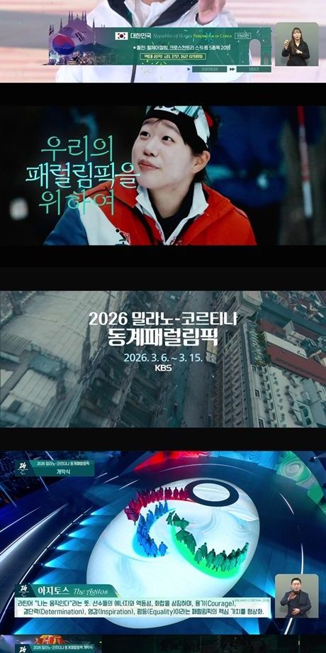 국내 방송사 가운데 유일하게 ‘2026 밀라노-코르티나 동계 패럴림픽’ 중계에 나선 KBS가 개막식 생중계를 시작으로 10일간의 여정을 시작했다.