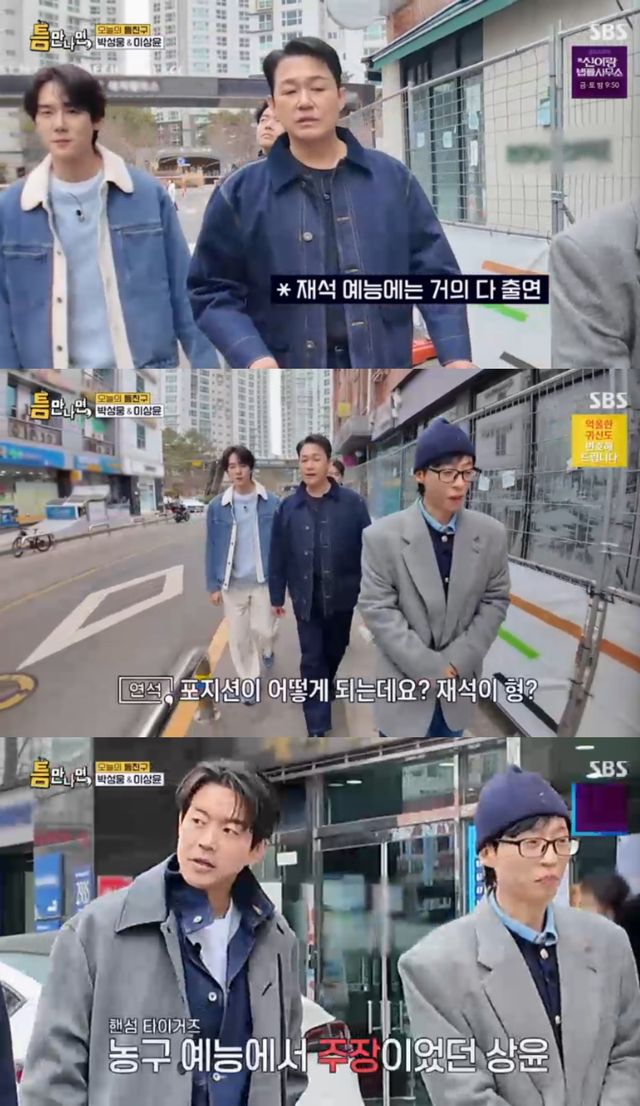 17일 방송된 SBS 예능 프로그램 '틈만 나면, 시즌4'에서는 '틈 친구'로 배우 박성웅, 이상윤이 출연해 유재석, 유연석과 함께 대치동을 찾아 '틈 주인'에게 행운을 선물했다.