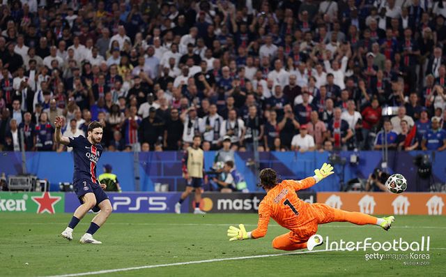 경기 초반부터 PSG가 강하게 몰아쳤다. 인터밀란은 내려앉고 PSG의 맹공을 막아냈다. 전반 9분 두에가 거리가 있는 위치에서 중거리 슈팅을 때렸는데 골키퍼 정면이었다.