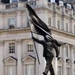 뱅크시, 런던 도심에 '깃발에 얼굴 가려진 양복 남성' 동상