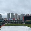 사직구장 대형 방수포 깔렸다, 9일 롯데-KT전 정상 진행 가능할까...많은 비 예보→외야 물웅덩이 생겼다 [부산 현장]