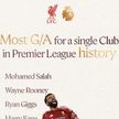 리버풀 살라, 루니 넘고 EPL 단일 클럽 최다 공격포인트 '신기록'