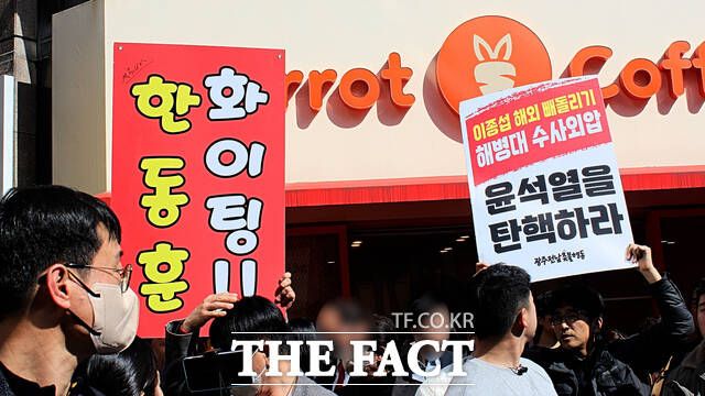 [더팩트 l 광주=나윤상 기자] 한동훈 국민의힘 비대위원장이 15일 광주를 찾아 지지를 호소했지만 여야 지지자 간 극단적인 갈등만 표출하는 모양새가 연출됐다.