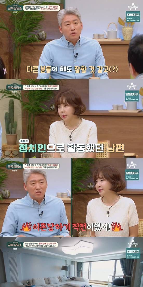 (엑스포츠뉴스 이예진 기자) '금쪽상담소' 황혜영, 김경록 부부의 한강뷰 집이 공개됐다.