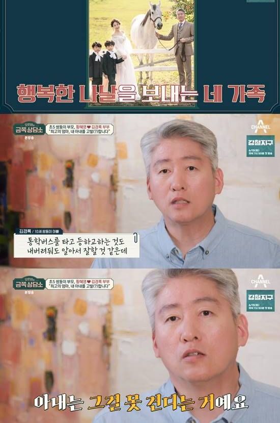 그러면서도 "그런 측면에서는 약간 제 나름대로의 불만이 있다"라며 "불안해하는게 불만이다. 학교를 보내는데 스쿨버스 타고 보내자고 했다. 당연한 거지 않냐. 못 보내겠다고 하더라"라며 "나보고 태워서 등교를 시키라고 하더라. 스쿨버스를 타고 등하교 하는 것도 놔둬도 할 것 같은데 그런 것을 못견딘다"며 불안감이 높은 것이 불만이라고 털어놨다.