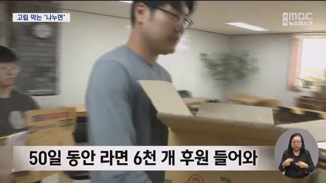 라면은 정기 후원처 기부로 제공되는데, 50일 동안 라면 6천 개와 김치 270kg 등이 들어왔습니다. 하지만 어린이 등에게 인기가 많은 '짜장라면' 같은 품목은 수급이 어려울 때가 종종 있습니다.