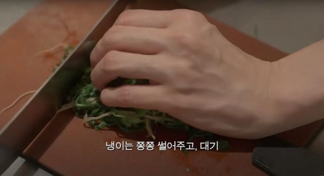 4. 불을 끄고 1에서 준비한 냉이를 솥밥 위에 올려주세요.